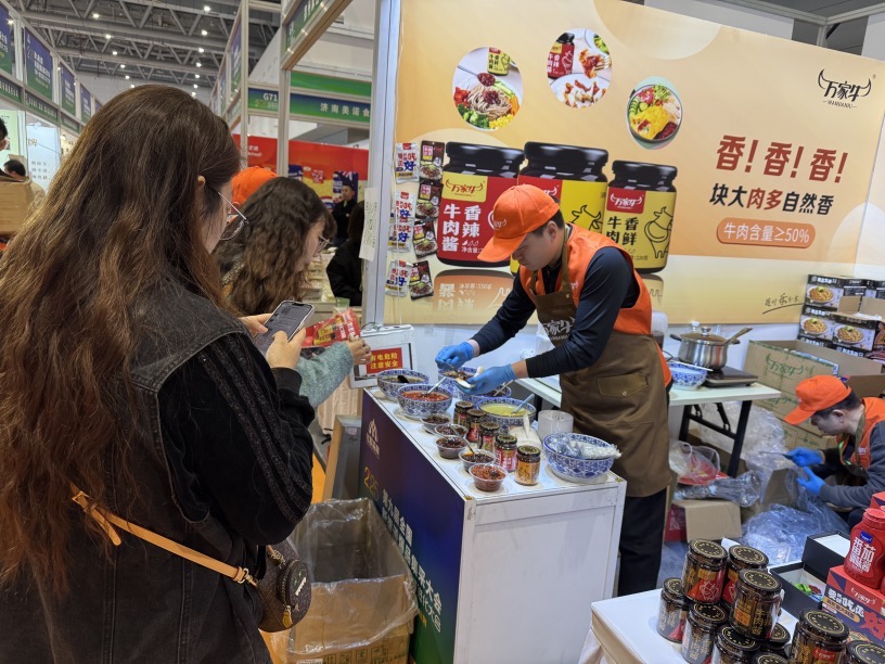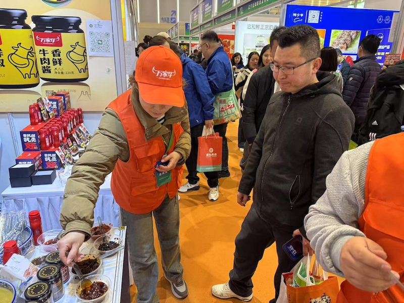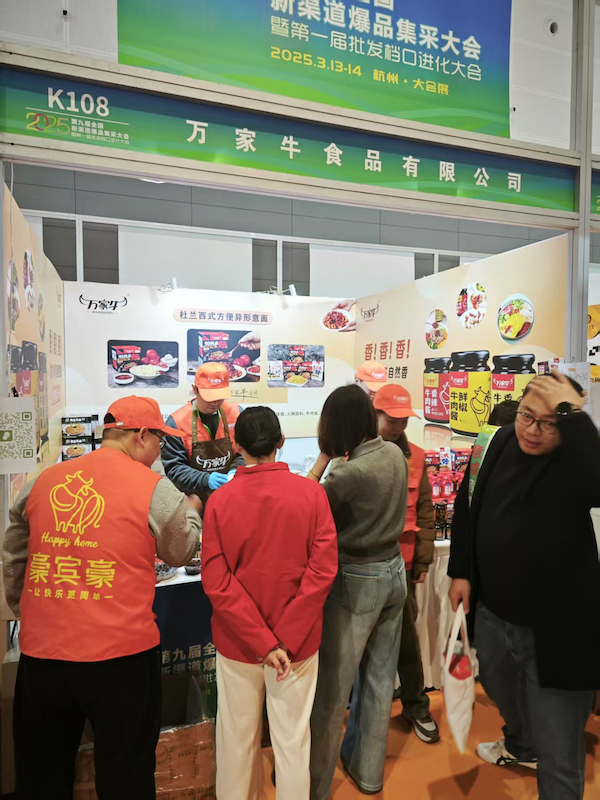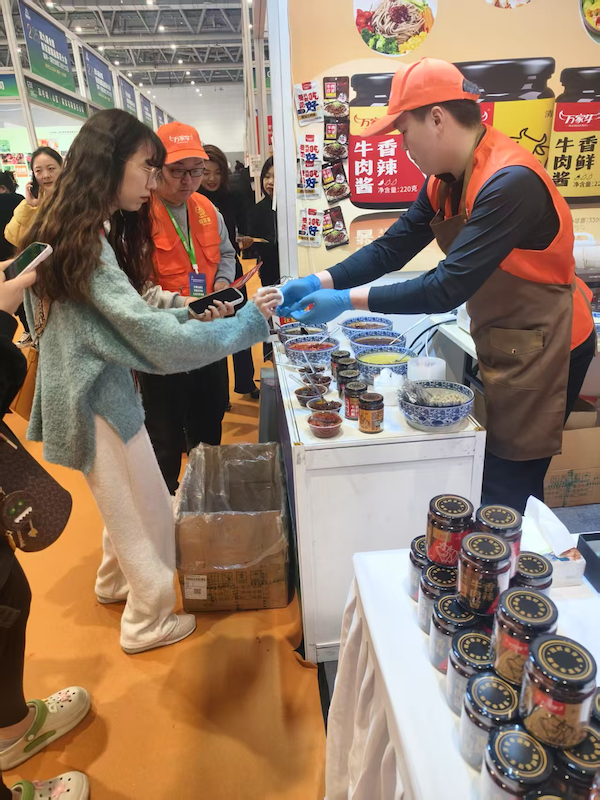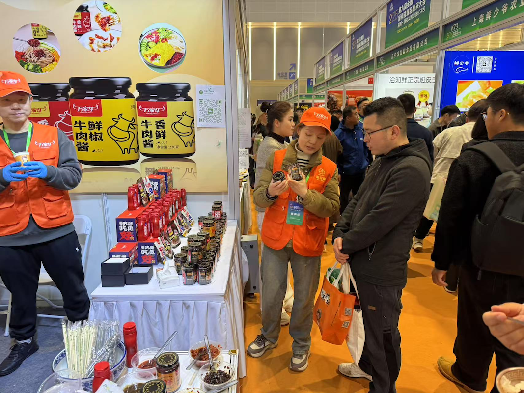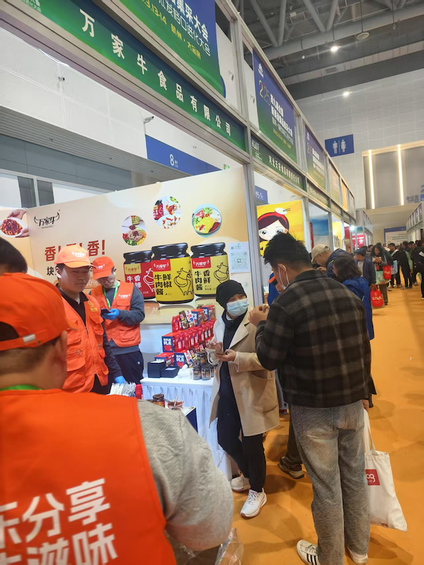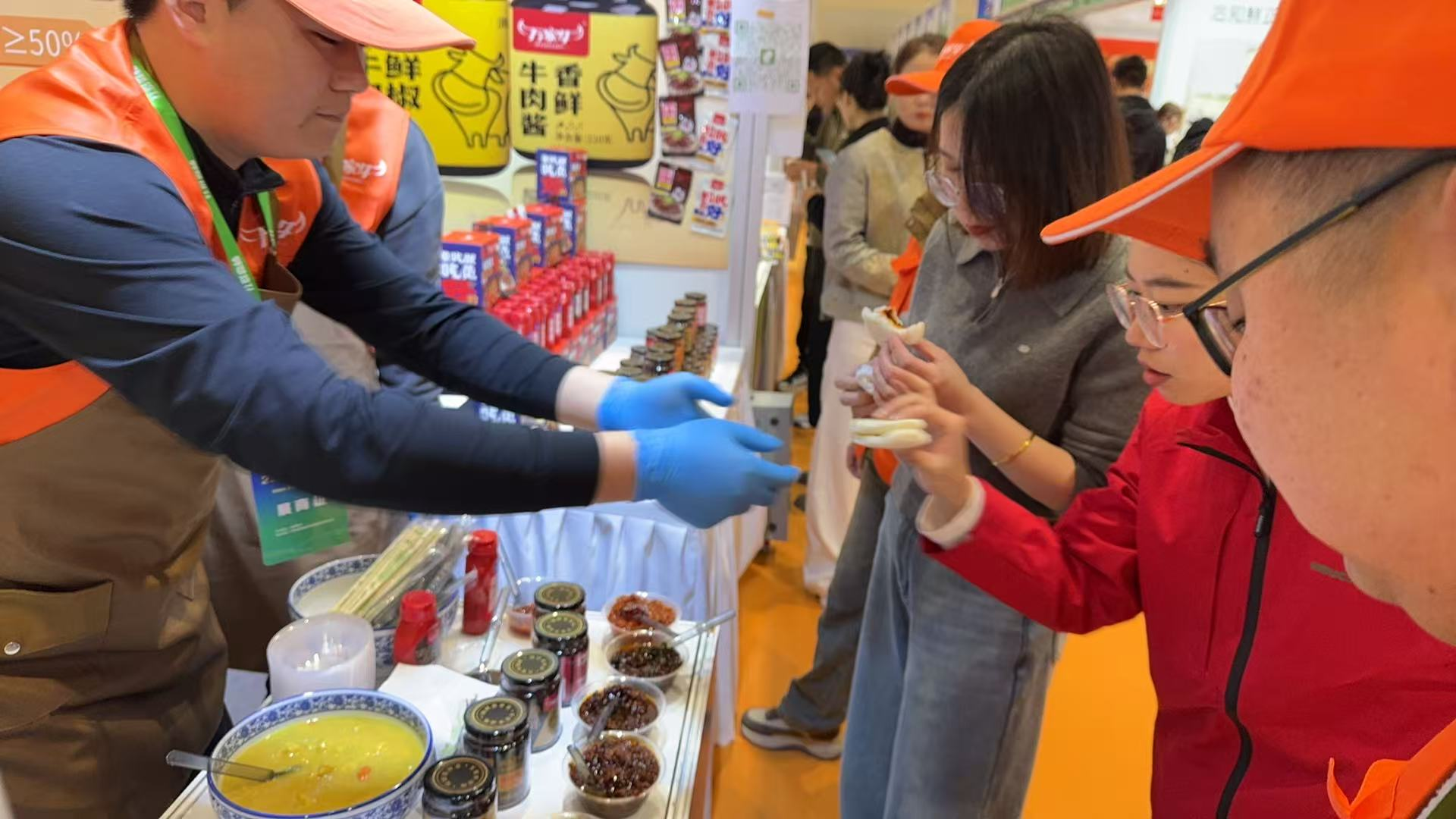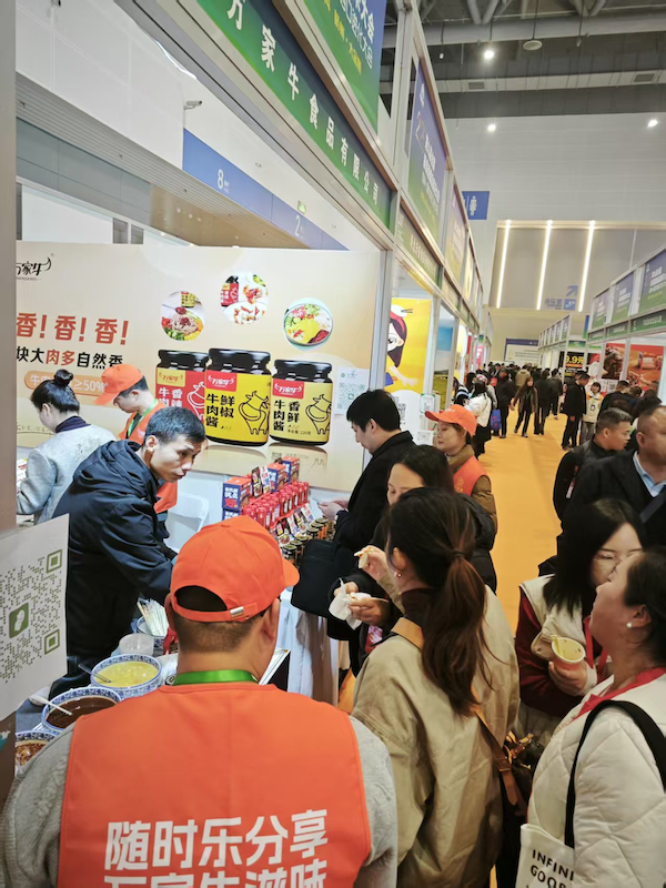 展会期间,为加深客户对麻豆免费视频网站产品的了解,麻豆免费视频网站设置了互动体验区,邀请参会者现场品尝牛肉酱,并分享产品的制作工艺和品牌故事。